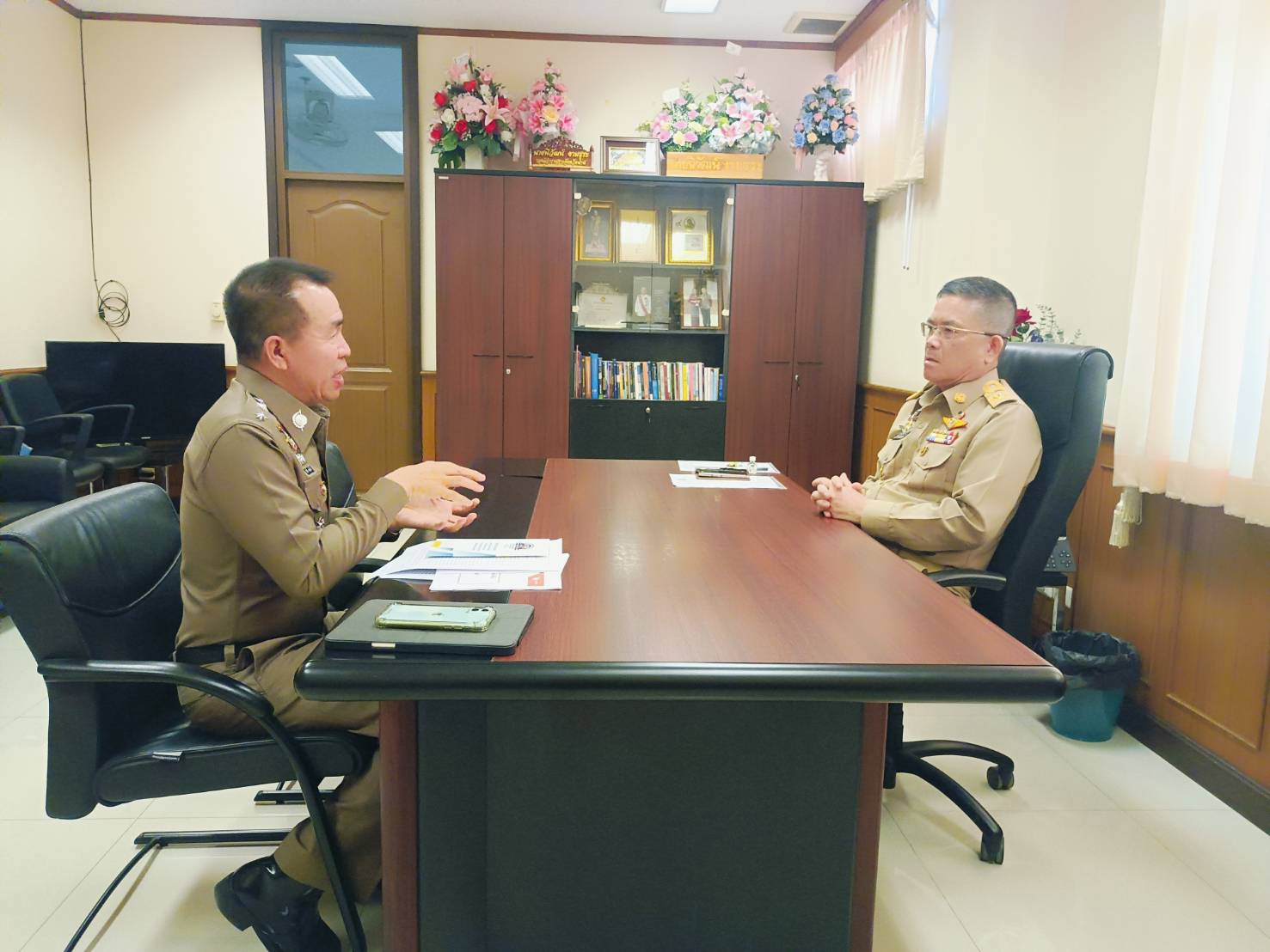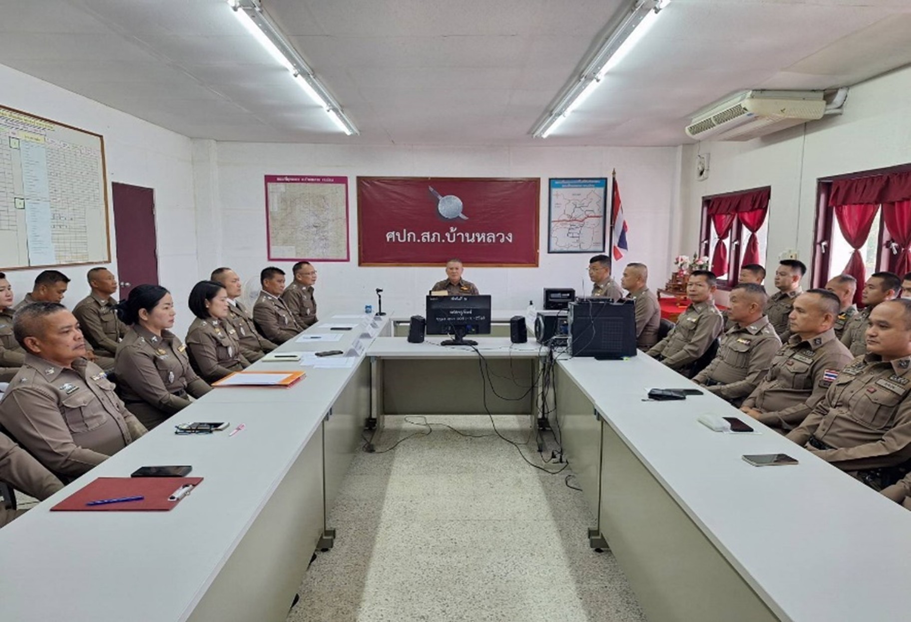 วันที่ 5 มีนาคม 2568 เวลา 14.00 น. พ.ต.อ.อนุพนธ์ สนิท ผกก.สภ.บ้านหลวง ได้เรียกหัวหน้าแต่ละสายงานในส