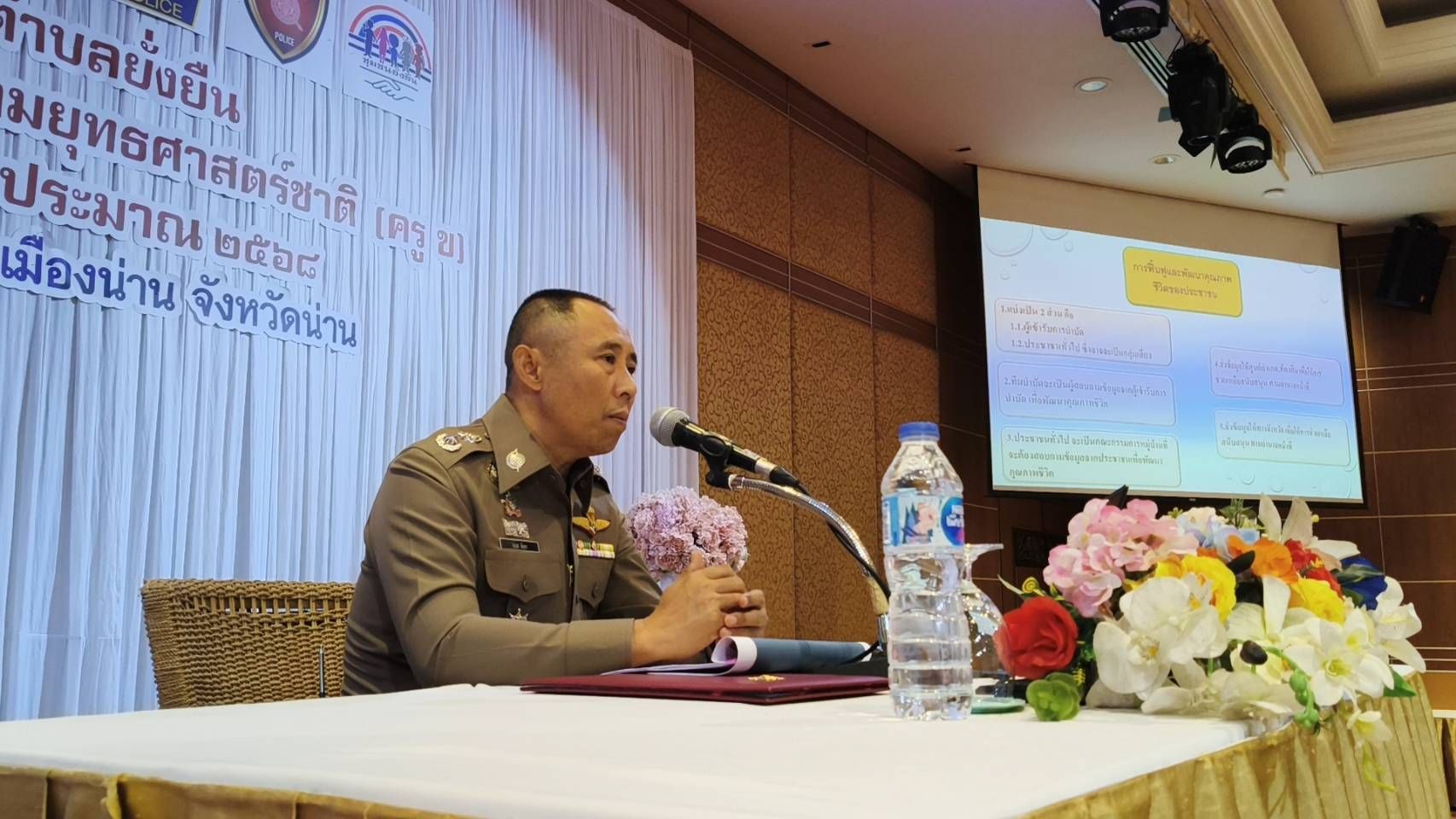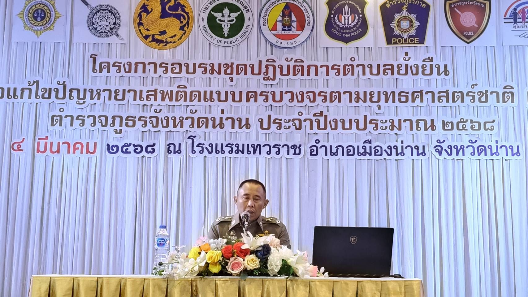 เข้ารับการอบรมโครงการดำเนินงานชุมชนยั่งยืน เพื่อแก้ไขปัญหายาเสพติดแบบครบวงจร ตามยุทธศาสตร์ชาติ ณ โรงแรมเทวราช ห้องแกรนด์บอลรูม