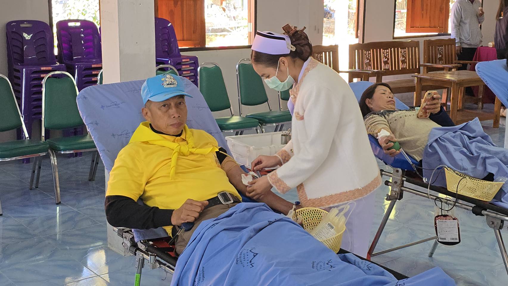 ข้าราชการตำรวจจิตอาสา สภ.บ้านหลวง จำนวน 5 นาย ร่วมกิจกรรมการบริจาคโลหิต ณ ศาลาประชาคมอำเภอบ้านหลวง เพื่อสร้างจิตสำนึกของการร่วมกันทำความดีด้วยหัวใจมีความเป็นจิตอาสา ด้วยการร่วมบริจาคโลหิตช่วยชีวิตเพื่อนมนุษย์ และสามารถสนับสนุนโลหิตให้แก่ธนาคารเลือดให้มีเลือดสำรองเพื่อนำไปรักษาผู้ป่วยต่อไป