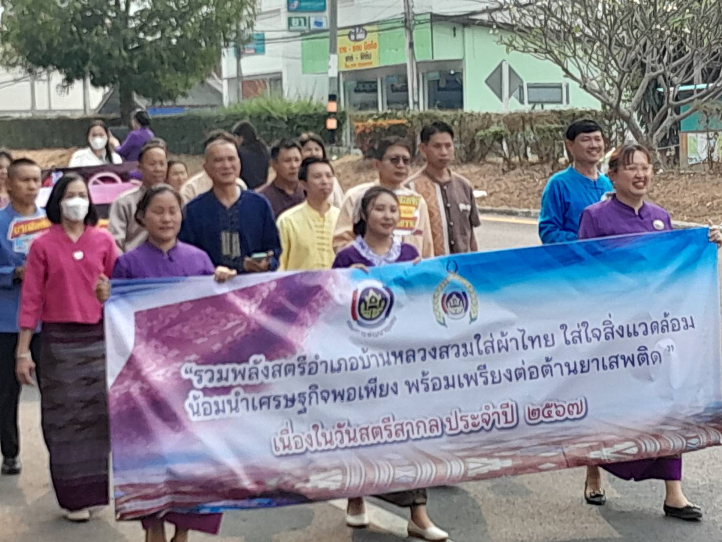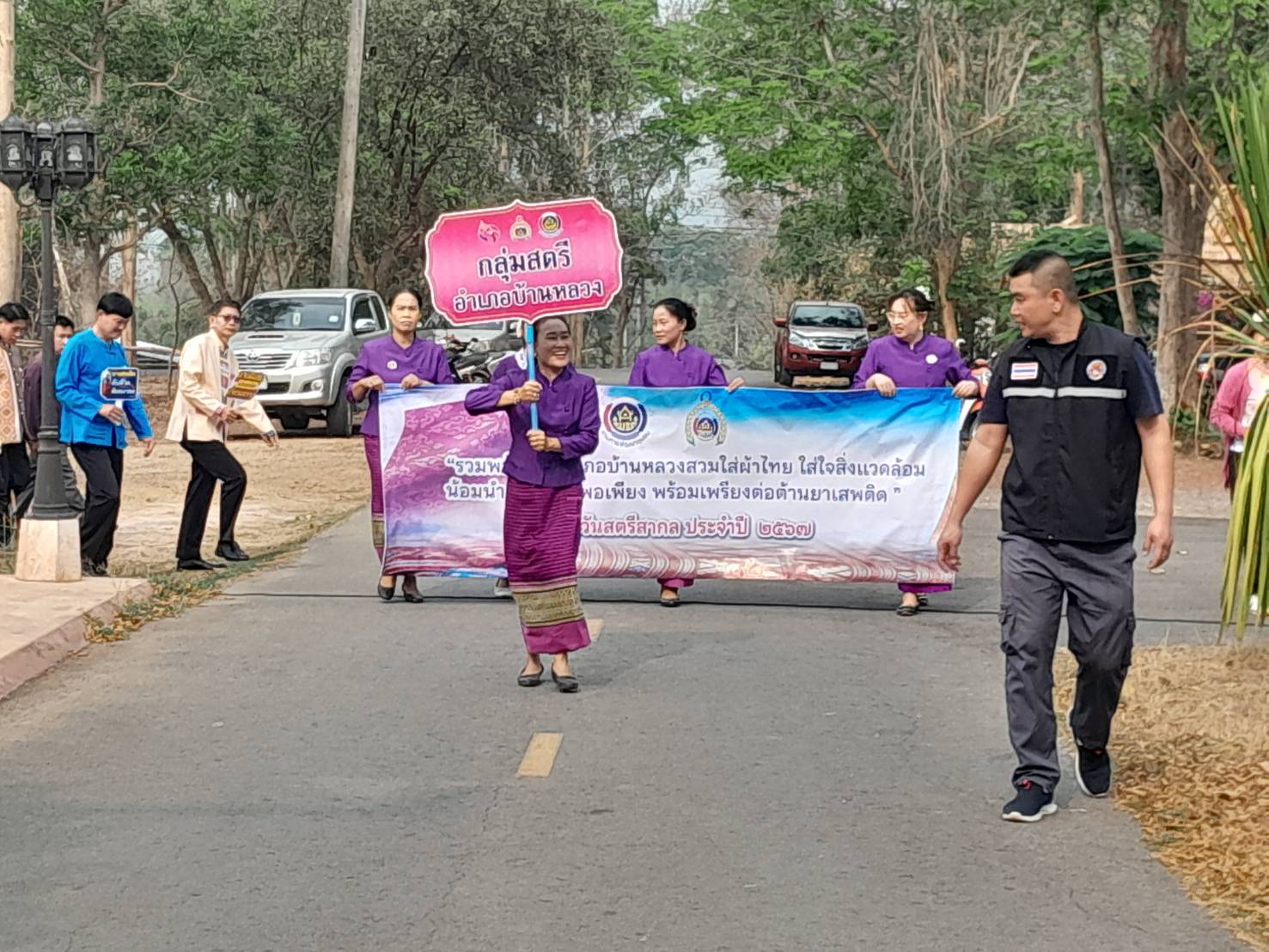 สภ.บ้านหลวง จว.น่าน วันที่ 12 มี.ค.2567 เวลา 09.00 น. พ.ต.อ.ธานินทร์ แสวงไวศยสุข ผกก.สภ.บ้านหลวง ร่วมกับหัวหน้าส่วนราชการอำเภอบ้านหลวง ร่วมกิจกรรมเดินรณรงค์การใช้ผ้าไทยและต่อต้านการใช้ยาเสพติดเนื่องในวันสตรีสากล ณ อำเภอบ้านหลวง จังหวัดน่าน