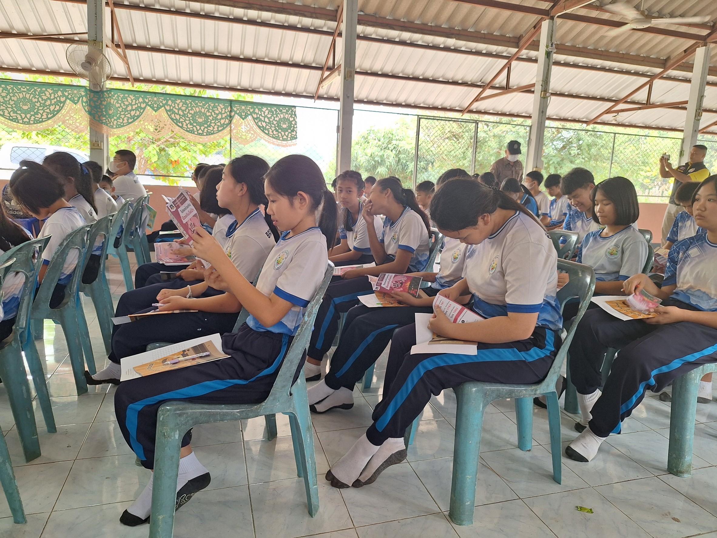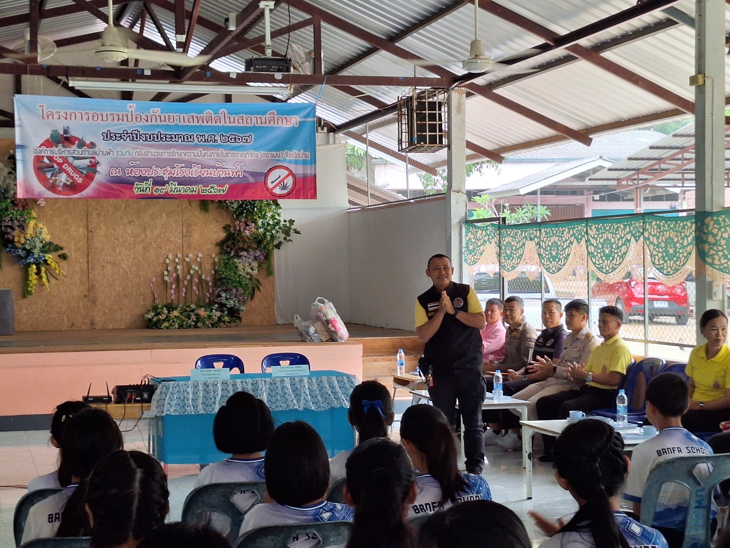 สภ.บ้านหลวง จว.น่าน วันที่ 19 มี.ค.67 เวลา 09.00 น. โดยการอำนวยการของ พ.ต.อ.ธานินทร์ แสวงไวศยสุข ผกก.สภ.บ้านหลวง ได้มอบหมายให้ พ.ต.ท.เจษฎา ปิ่นชูทอง รอง ผกก.ป.สภ.บ้านหลวง พร้อมด้วยชุดชุมชนและมวลชนสัมพันธ์ ร่วมกิจกรรมเสริมสร้างความรู้ความเข้าใจและสร้างภูมิคุ้มกันในการป้องกันและแก้ไขปัญหาความมั่นคง โดยได้อบรมให้ความรู้เกี่ยวกับยาเสพติด, บุหรี่ไฟฟ้าและ การป้องกันและแก้ไขการแข่งรถในทาง ทั้งนี้ ได้ประชาสัมพันธ์สร้างการรับรู้ให้ลดการเผาเพื่อแก้ปัญหาหมอกควัน และลดมลพิษทางอากาศ ณ โรงเรียนบ้านฟ้า ต.บ้านฟ้า อ.บ้านหลวง จว.น่าน