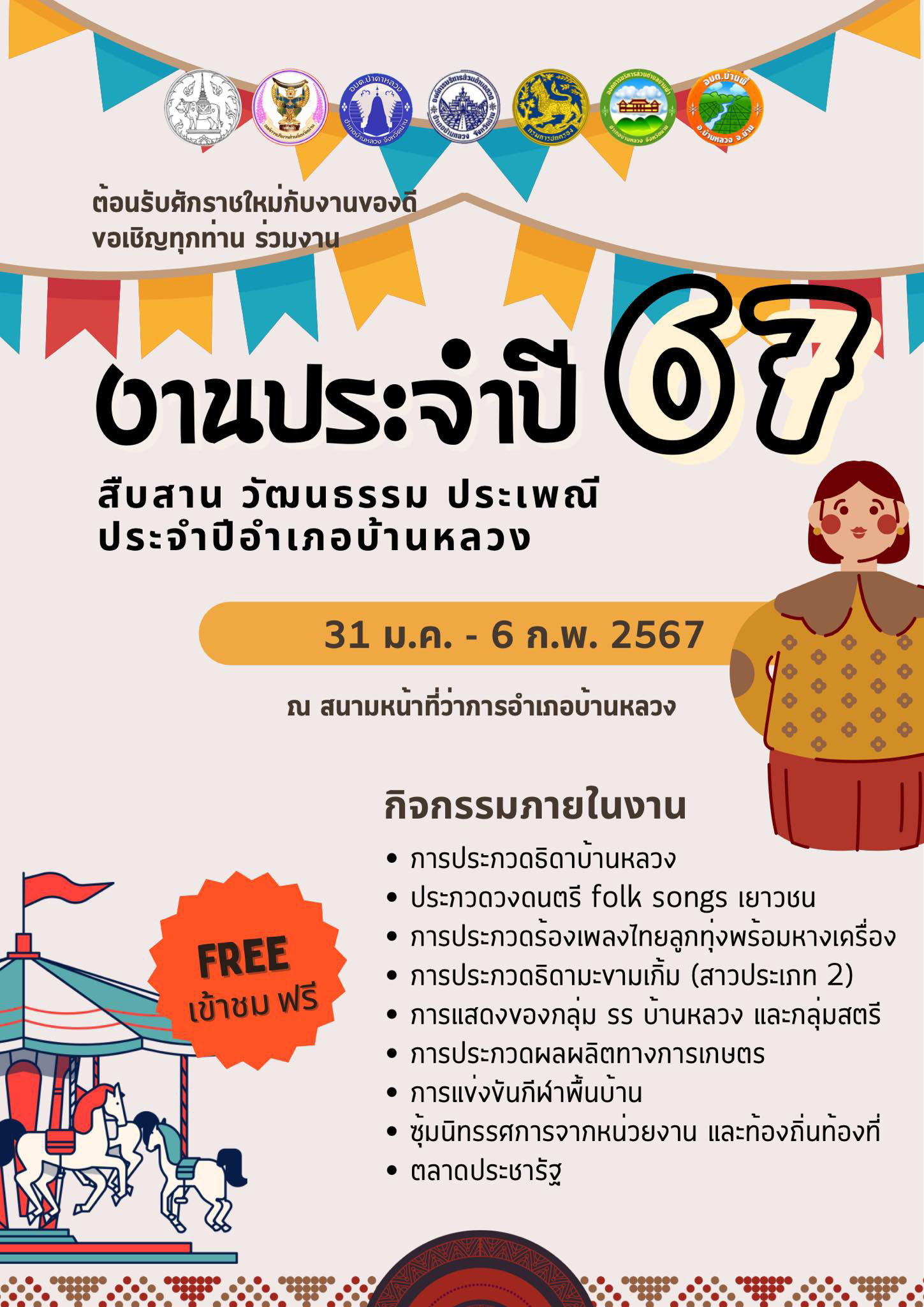 ขอเชิญชวนเที่ยวงานสืบสาน วัฒนธรรม ประเพณี ประจำปี 2567 เพจ : อำเภอบ้านหลวง จังหวัดน่าน