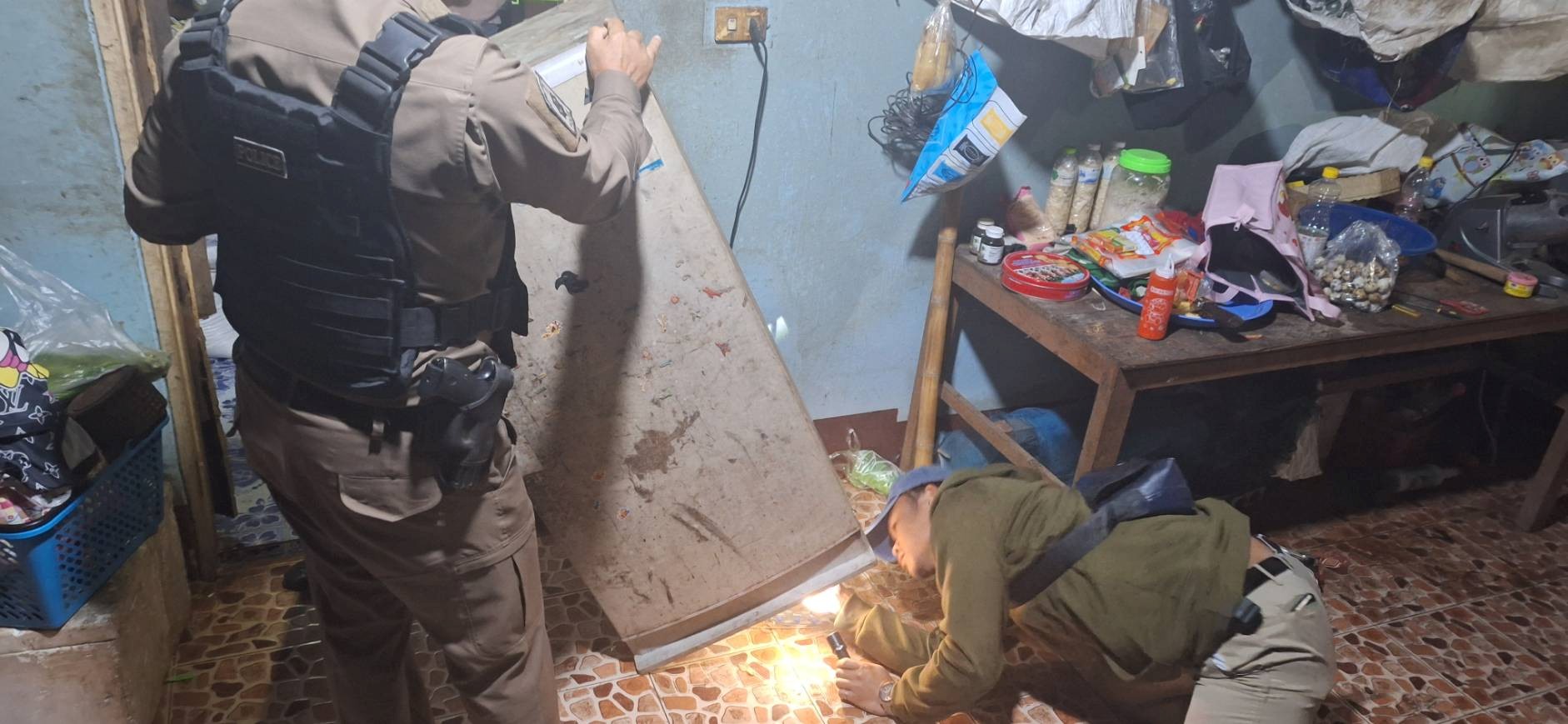 วันที่ 28 ม.ค. 68 ได้มีการจับกุมผู้ต้องหา จำนวน 2 ราย 2 คน ในข้อหา มียาเสพติดให้โทษประเภทที่ 1 (ยาบ้า) ไว้ในครอบครองโดยผิดกฎหมาย , เสพยาเสพติดให้โทษประเภทที่ 1(ยาบ้า)โดยผิดกฎหมาย , มีอาวุธปืนไว้ในครอบครองโดยไม่ได้รับอนุญาตจากนายทะเบียนท้องที่ โดยได้มีการสืบสวนหาข่าว ประกอบกับได้รับแจ้งจากสายลับ จึงได้นำกำลังเข้าตรวจสอบพบผู้ต้องหาจึงได้ทำการตรวจค้น พบยาบ้าของกลาง อาวุธปืน และทำการตรวจปัสสาวะ ให้ผลเป็นบวก จึงได้ดำเนินคดีตามกฎหมายต่อไป