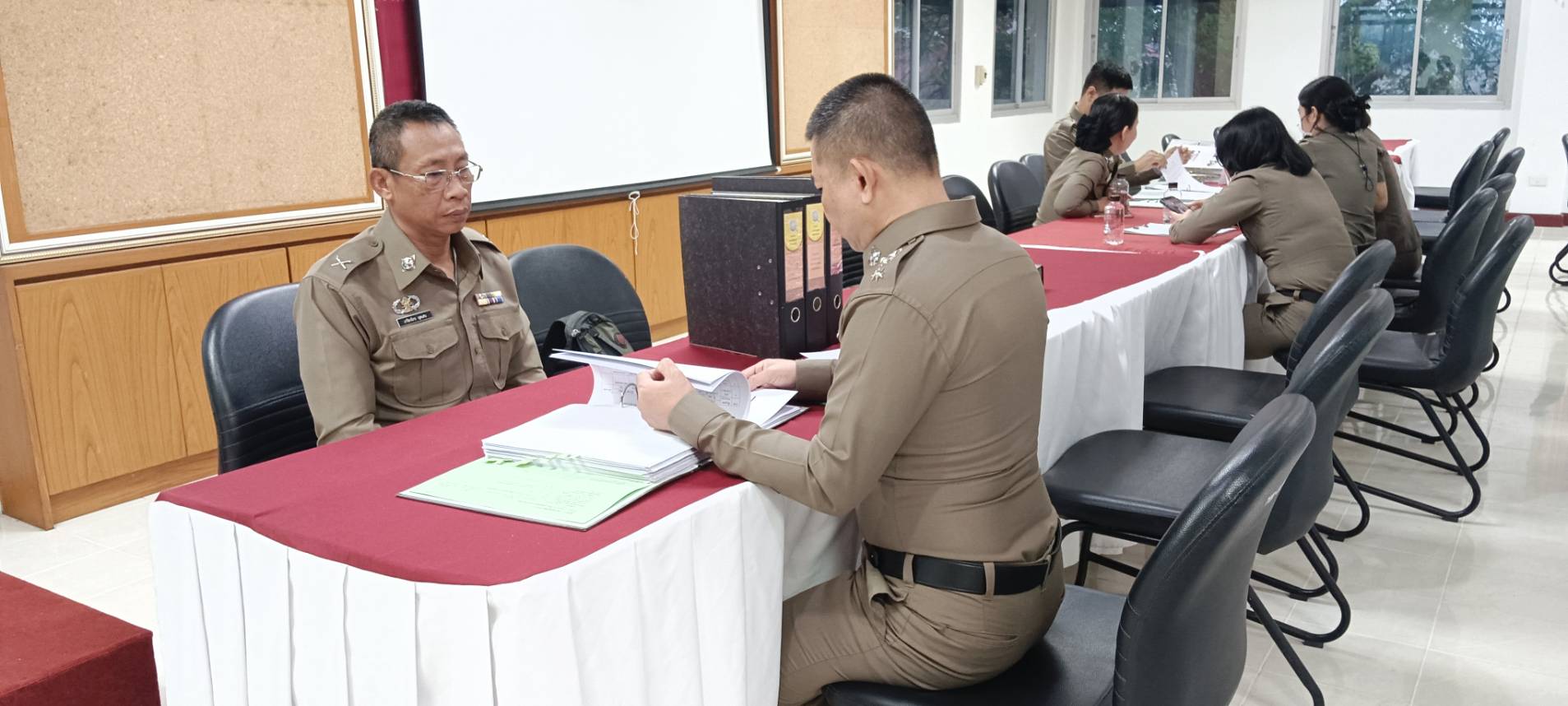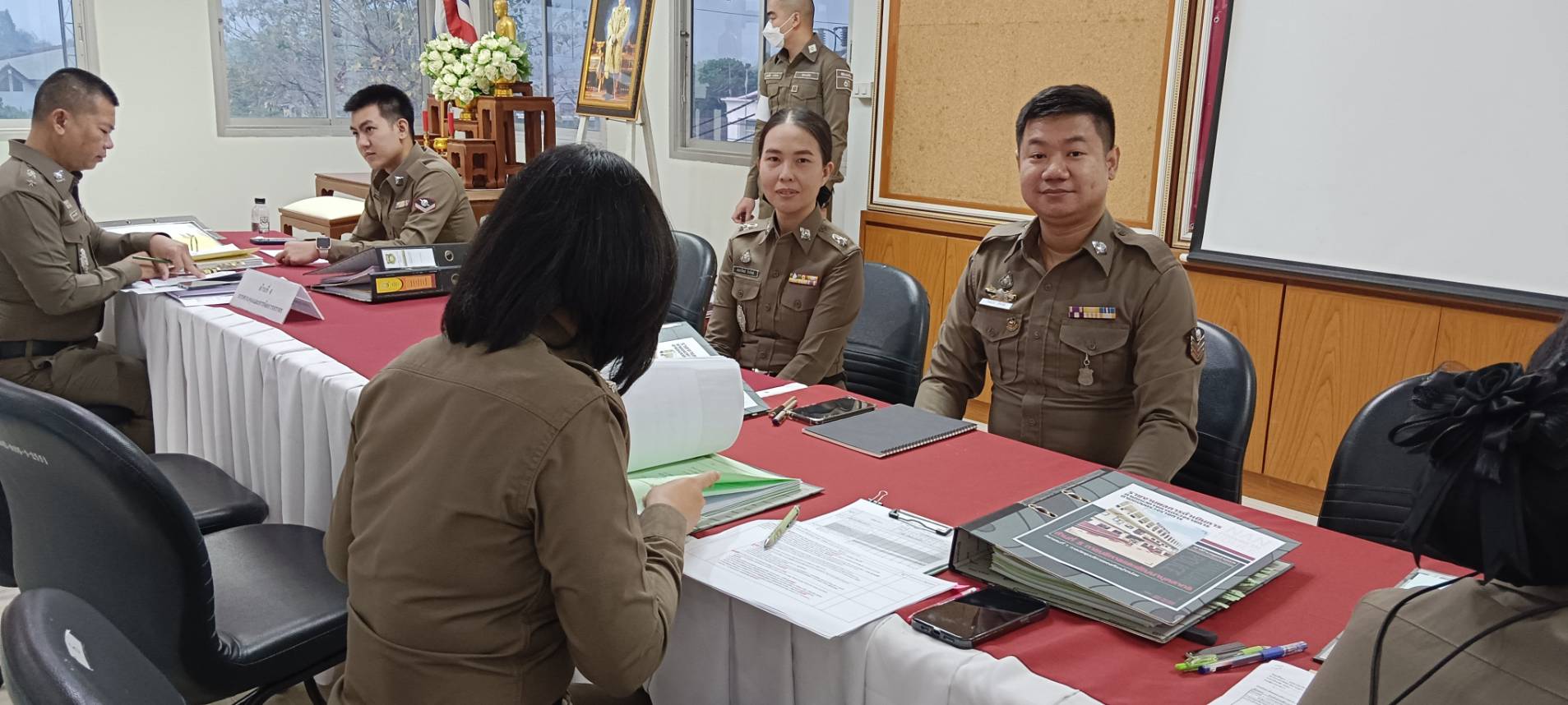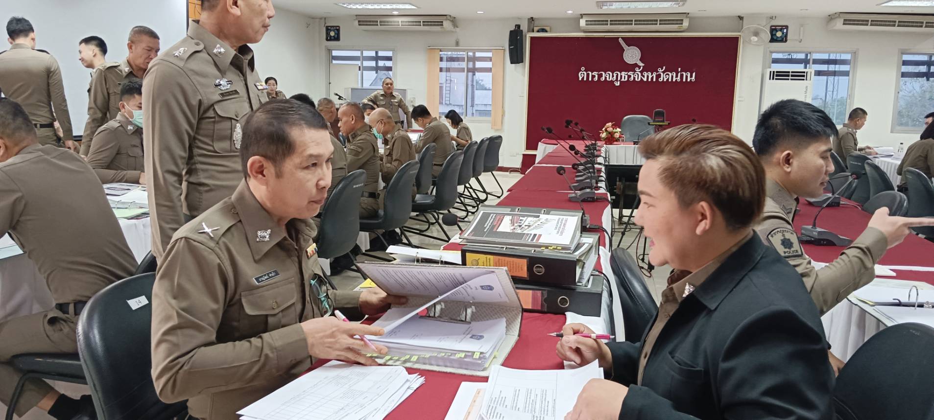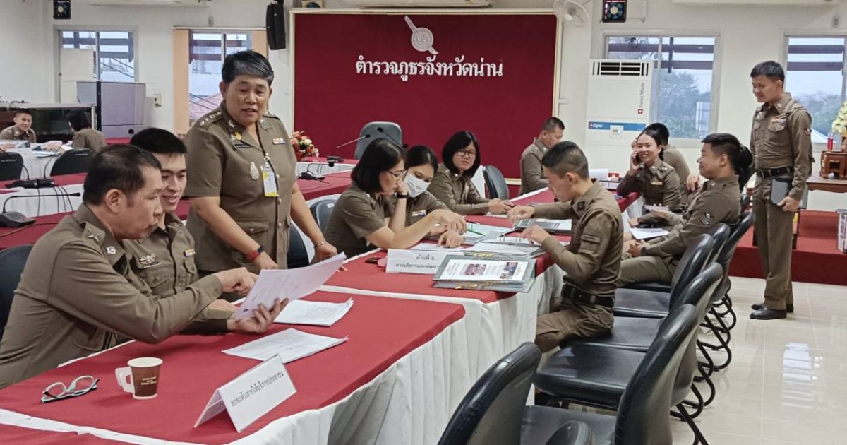 สภ.บ้านหลวง จว.น่าน วันที่ 12 มี.ค.2567 เวลา 08.30 น.-12.00 น. พ.ต.ท.อดุลย์ ขาววงศ์ รองผกก(สอบสวน) สภ.บ้านหลวง ,พ.ต.ต.หญิง อมรรัตน์ รักสัตย์ สว.อก.สภ.บ้านหลวง พร้อมด้วย เจ้าหน้าที่ตำรวจฝ่ายอำนวยการแต่ละแผนกงาน นำแฟ้มตรวจราชการประจำปี 2567 เพื่อเข้ารับการตรวจราชการฯ ณ. ภ.จว.น่าน ชั้น 3 โดยมี พ.ต.อ.ศุภวรรณ เพิ่มกำลังพล ผกก.ฝอ.ภ.จว.น่าน พร้อมคณะตรวจราชการฯ ภ.จว.น่าน เป็นผู้ตรวจสอบความพร้อมฯ