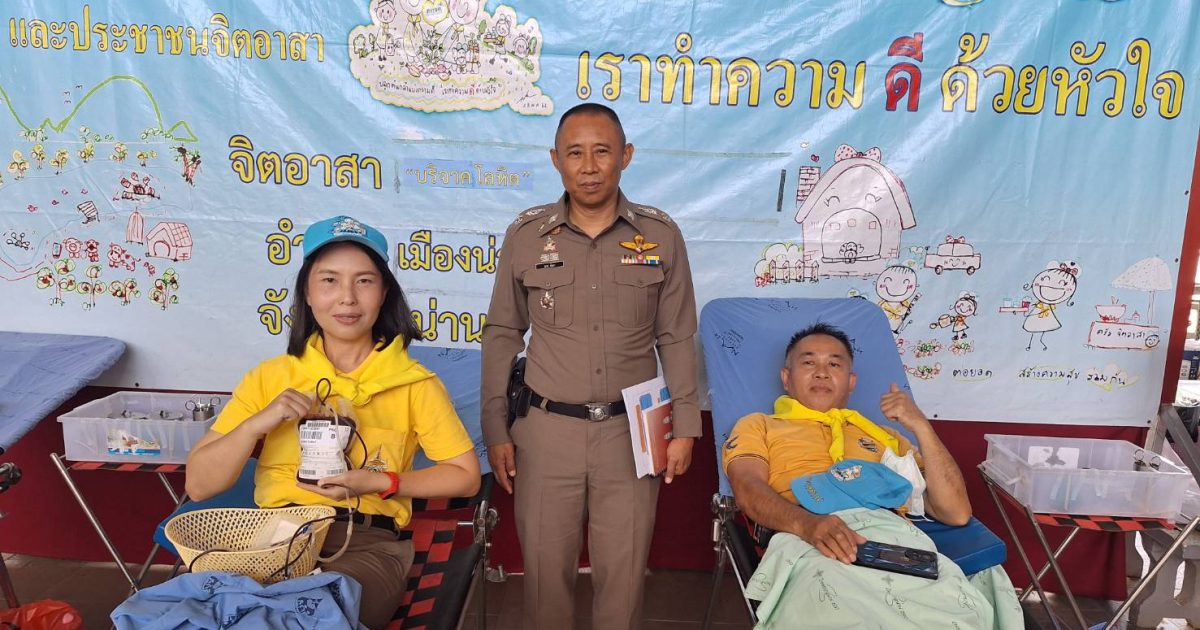 วันที่ 9 ก.ค.67 เวลา 09.00 น. โดยการอำนวยการของ พ.ต.อ.ธานินทร์ แสวงไวศยสุข ผกก.สภ.บ้านหลวง มอบหมายให้ข้าราชการตำรวจจิตอาสา สภ.บ้านหลวง จำนวน 5 นาย ร่วมกิจกรรมบริจาคโลหิต เพื่อสร้างจิตสำนึกร่วมกันในการทำความดี ช่วยเหลือเพื่อนมนุษย์ รู้จักเป็นผู้ให้ และสามารถสนับสนุนโลหิตให้แก่ธนาคารเลือด ให้มีเลือดสำรองเพื่อนำไปรักษาผู้ป่วย ณ ลานภัทรพงศ์สินธุ์ ภ.จว.น่าน