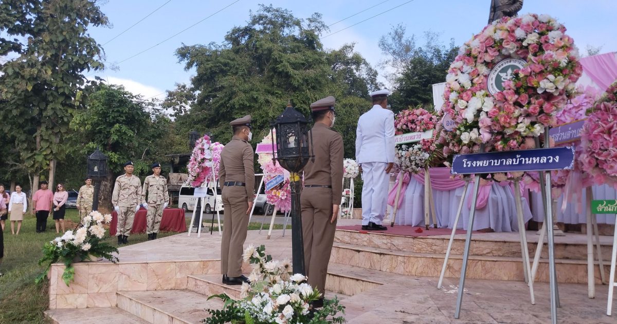 วันนี้ ( 23 ต.ค.66 ) เวลา 7.45 น. พ.ต.อ.ธานินทร์ แสวงไวศยสุข ผกก.สภ.บ้านหลวง มอบหมายให้ พ.ต.ต.จักรกิต วุฒิโอสถ สวป.ฯ พร้อมเจ้าหน้าที่ตำรวจ เข้าร่วมพิธีวางพวงมาลา เนื่องในวันคล้ายวันสวรรคตรพระบาทสมเด็จพระจุลจอมเกล้าเจ้าอยู่หัว