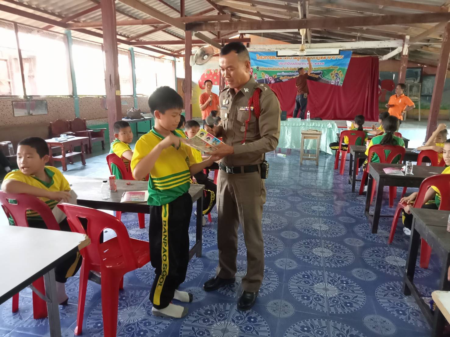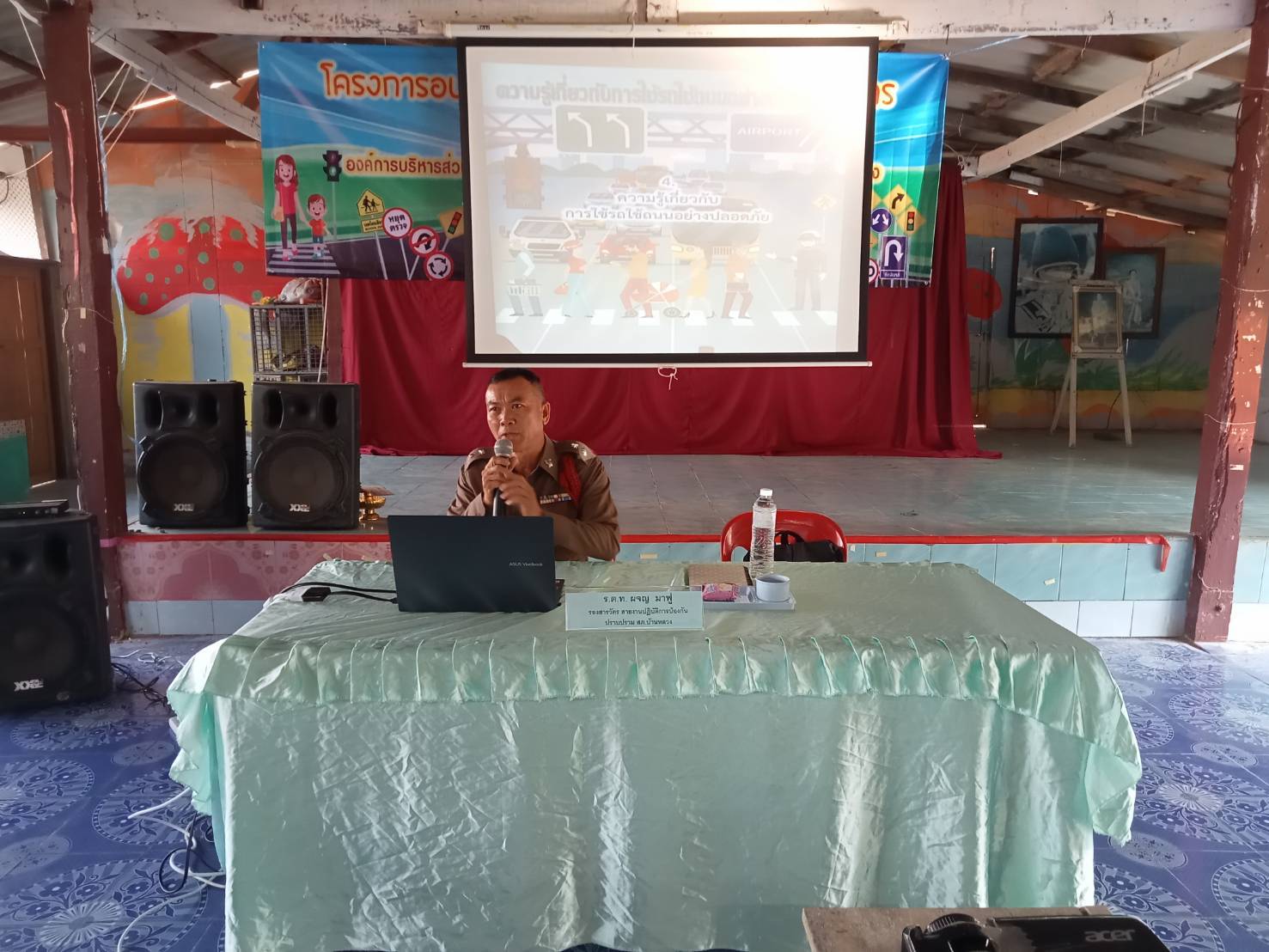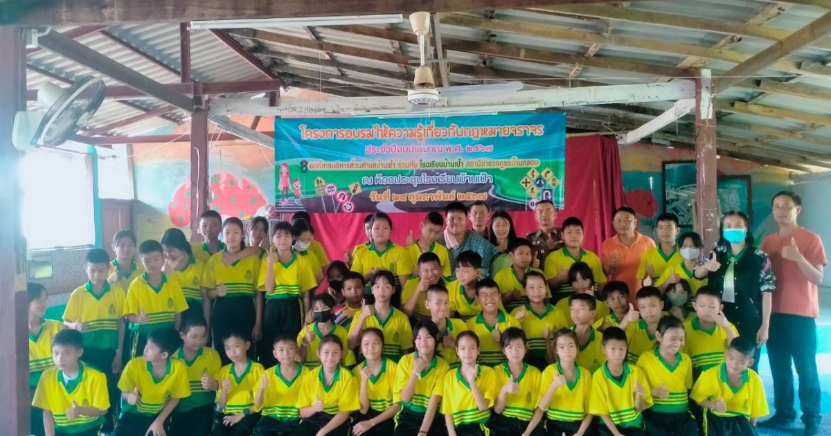 สภ.บ้านหลวง จว.น่าน วันที่ 29 ก.พ.2567 เวลา 09.00-11.00 น. โดยการอำนายการของ พ.ต.อ.ธานินทร์ แสวงไวศยสุข ผกก.สภ.บ้านหลวง ได้มอบหมายให้ข้าฯ ร.ต.ท.ผจญ มาฟู รองสว.(ป.)ฯ ให้เป็นวิทยากร อบรมให้ความรู้เกี่ยวกับกฎหมายจราจร และการใช้รถใช้ถนนอย่างปลอดภัย ให้กับนักเรียนโรงเรียนบ้านเป้า ตำบลบ้านฟ้า อำเภอบ้านหลวง จังหวัดน่าน โดยมี นายกอบต.บ้านฟ้า เป็นประธานพิธีฯ และมีคณะครูและนักเรียนเข้าร่วมกิจกรรมดังกล่าวในครั้งนี้