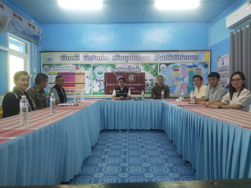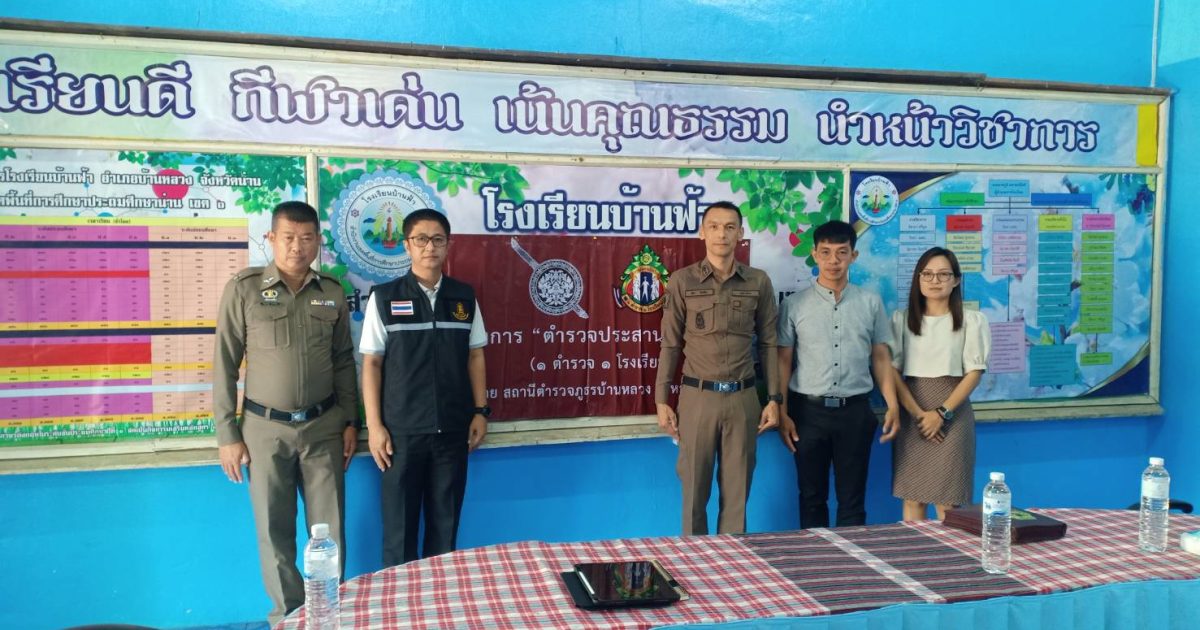 วันที่ 21 กุมภาพันธ์ 2567 เวลา 10.00 น.โดยการอำนวยการของ พ.ต.อ.ธานินทร์ แสวงไวศยสุข ผกก.สภ.บ้านหลวง จว.น่าน มอบหมายให้ พ.ต.ท.สุบิน สีเหลือง รอง ผกก.สส.ฯ พร้อมเจ้าหน้าที่ตำรวจประสานโรงเรียน ฯ ประชุมชี้แจงแนวทางการดำเนินงานโครงการ ตำรวจประสานงานโรงเรียน 1 ตำรวจ 1 โรงเรียน โดยมีผู้อำนวยการโรงเรียนบ้านฟ้า ต.บ้านฟ้า พร้อมคณะครู 3 ฝ่าย (ครูฝ่ายป้องกัน,ครูฝ่ายปกครองและครูฝ่ายพิสูจน์) ร่วมประชุมตามโครงการตำรวจประสานโรงเรียน (1 ตำรวจ 1 โรงเรียน) ได้ร่วมหารือกำหนดแนวทางปฏิบัติร่วมกัน ทั้งโครงการตำรวจประสานโรงเรียนและโครงการอื่นๆ ที่เกี่ยวข้องกับโรงเรียน