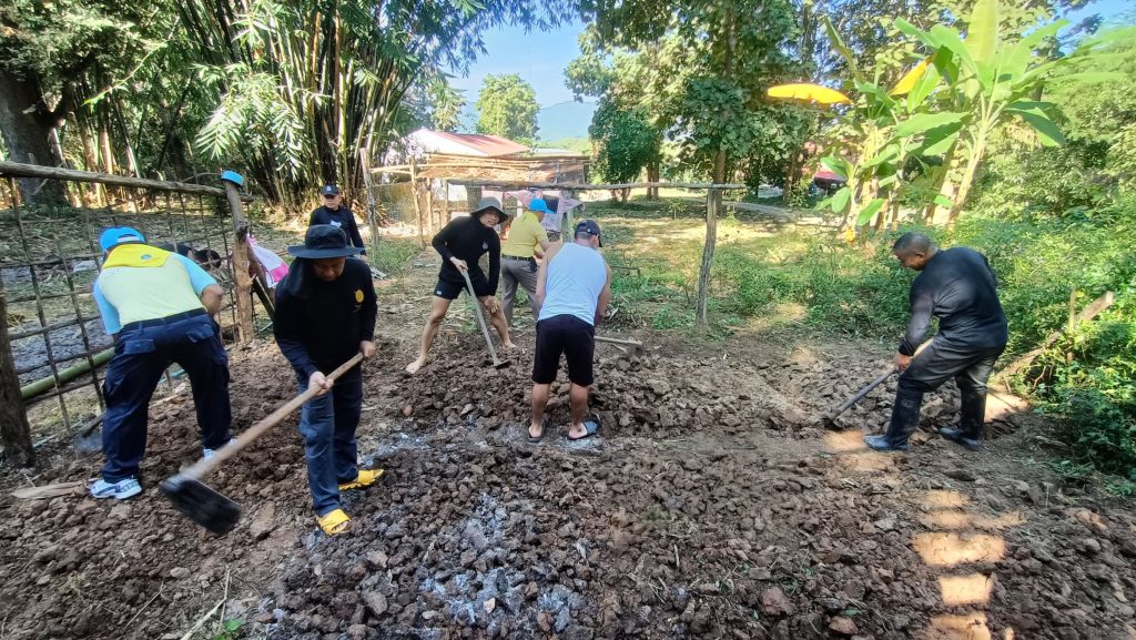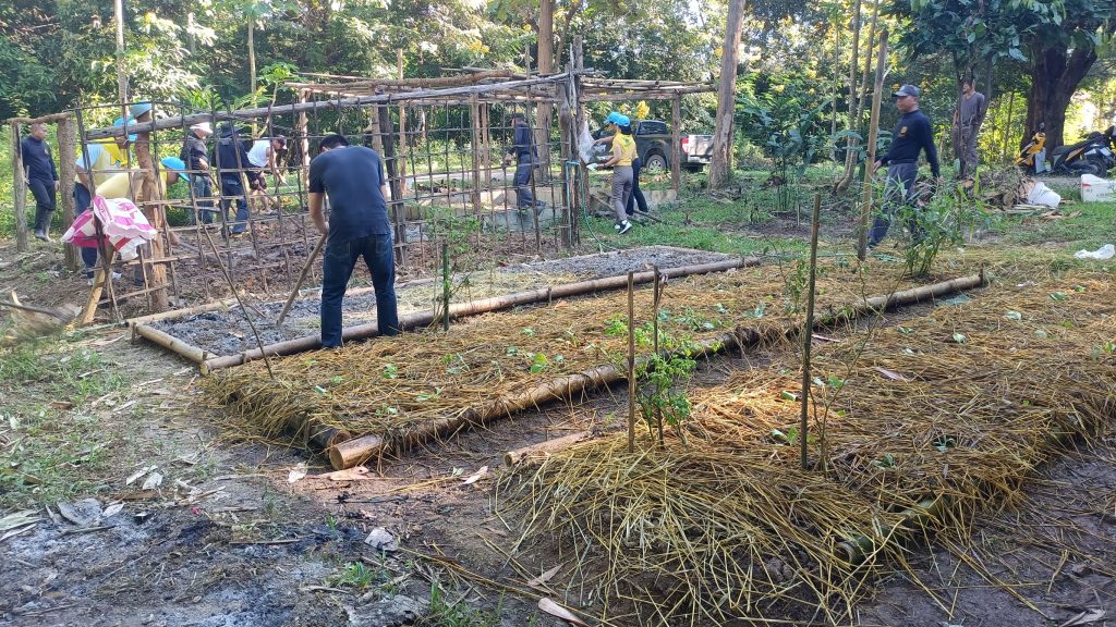 สภ.บ้านหลวง จว.น่าน วันที่ 16 พ.ย. 2566 เวลา 09.00 น. โดยการอำนวยการของ พ.ต.อ.ธานินทร์ แสวงไวศยสุข ผกก.สภ.บ้านหลวง จว.น่าน มอบหมายให้ พ.ต.ต.หญิง อมรรัตน์ รักสัตย์ สว.อก.ฯ พร้อมด้วยข้าราชการตำรวจ สภ.บ้านหลวง ได้ร่วมกันทำแปลงผักเพื่อปลูกพันธุ์พืชผักสวนครัวของ สภ.บ้านหลวง โดยใช้ประโยชน์จากพื้นที่แปลงปลูกผักสวนครัวบ้านนี้มีรักปลูกผักกินเอง ปลูกพืชผักปลอดสารพิษ เพื่อนำผลผลิตมาบริโภค เพื่อสร้างความรักความสามัคคีในหมู่คณะสำหรับให้ข้าราชการตำรวจเป็นอาหารกลางวัน ทำให้สามารถลดค่าใช้จ่ายในดำรงชีวิตของข้าราชการตำรวจได้เป็นอย่างดี โดยยึดหลักเศรษฐกิจพอเพียง มาใช้ในการดำเนินชีวิตอย่างต่อเนื่อง และเป็นรูปธรรมต่อไป