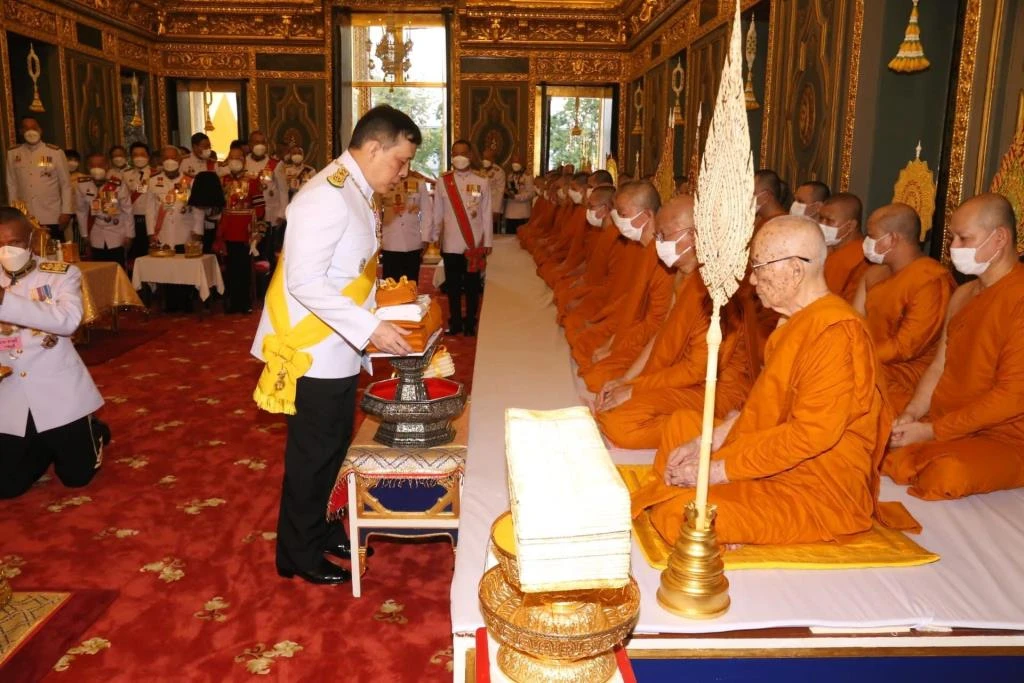 ต่อจากนั้น ทรงหยิบผ้าห่มสำหรับพระประธาน พระราชทานเจ้าพนักงานภูษามาลา จากนั้น เจ้าหน้าที่กรมการศาสนากราบบังคมทูลรายงานจำนวนพระสงฆ์ จบแล้ว ทรงหยิบผ้าไตรที่พานแว่นฟ้าพาดระหว่างพระกร ทรงกล่าวคำถวายผ้าพระกฐิน ทรงวางผ้าไตรไว้บนพานแว่นฟ้าที่เดิม แล้วทรงประเคนผ้าไตรและเทียนปาฏิโมกข์แด่พระสงฆ์รูปที่ 2 เมื่อพระสงฆ์ทำพิธีกฐินกรรมแล้ว ทรงจุดธูปเทียนเครื่องทองน้อยถวายสักการะพระอัฐิสมเด็จพระสังฆราชเจ้า กรมหลวงชินวราลงกรณ (วาสน์ วาสโน) พระราชอุปัธยาจารย์ ทรงคม ทรงทอดผ้าไตร 10 ไตร พระสงฆ์ 10 รูป สดับปกรณ์ เมื่อพระสงฆ์ที่สดับปกรณ์และพระสงฆ์ผู้ครองผ้าพระกฐินออกไปครองผ้าพระกฐิน เสร็จแล้ว พระบาทสมเด็จพระเจ้าอยู่หัว เสด็จพระราชดำเนินไปทรงถวายเครื่องบริวารพระกฐินแด่พระสงฆ์ผู้ครองผ้าพระกฐิน ทรงหลั่งทักษิโณทก พระสงฆ์ถวายอนุโมทนา ถวายอดิเรก ทรงกราบที่หน้าเครื่องนมัสการ ทรงลาพระสงฆ์ ทรงรับการถวายความเคารพของผู้มาเฝ้าทูลละอองธุลีพระบาท แล้วเสด็จออกจากพระอุโบสถ ประทับรถยนต์พระที่นั่ง เสด็จพระราชดำเนินไปยังวัดพระเชตุพนวิมลมังคลาราม