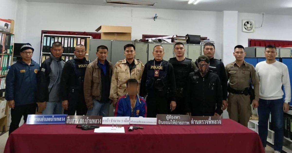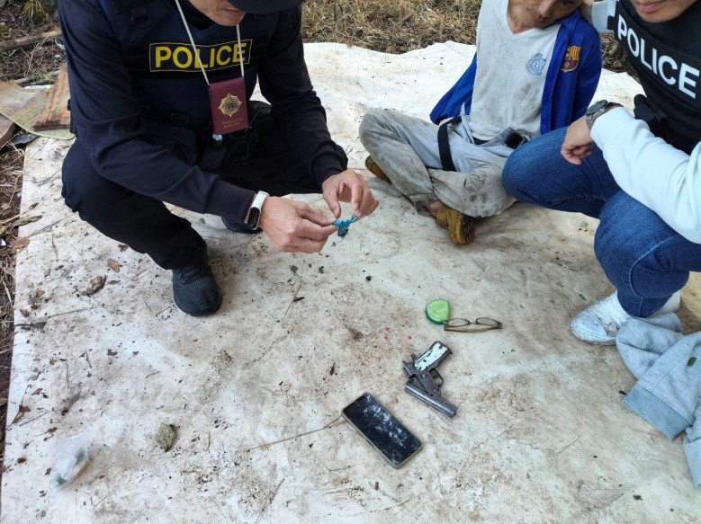 เมื่อวันที่ 17 ธ.ค. 68 ได้มีการจับกุมผู้ต้องหา จำนวน 1 ราย 1 คน ในข้อหา มียาเสพติดให้โทษประเภท ๑ (ยาบ้า) ไว้ในครอบครองโดยผิดกฎหมาย,เสพยาเสพติดให้โทษประเภท ๑ (ยาบ้า) โดยฝ่าฝืนต่อกฎหมาย,มีอาวุธปืนและเครื่องกระสุนปืนไว้ในครอบครองโดยไม่ได้รับอนุญาตจากนายทะเบียนท้องที่ โดยได้มีการสืบสวนหาข่าว ประกอบกับได้รับแจ้งจากสายลับ จึงได้นำกำลังร่วมกับฝ่ายปกครอง เข้าตรวจสอบพบผู้ต้องหาจึงได้ทำการตรวจค้น พบ ยาบ้า ลักษณะเม็ดเล็กกลมแบน สีแดง จำนวน 5 เม็ด ,เครื่องกระสุนปืนขนาด .๓๘ จำนวน 4 นัด,อาวุธปืนสั้นแบบไทยประดิษฐ์ ขนาด .38 จำนวน ๑ กระบอกและทำการตรวจปัสสาวะ ให้ผลเป็นบวก จึงได้ดำเนินคดีตามกฎหมายต่อไป