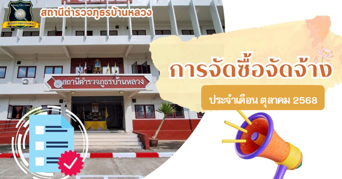 ประกาศต่าง ๆ เกี่ยวกับการจัดซื้อจัดจ้าง ของสถานีตำรวจภูธรบ้านหลวง ประจำปีงบประมาณ พ.ศ. 2569 ตามพระราชบัญญัติ การจัดซื้อจัดจ้างและการบริหารพัสดุภาครัฐ พ.ศ.2560 ประจำเดือน ตุลาคม 2568