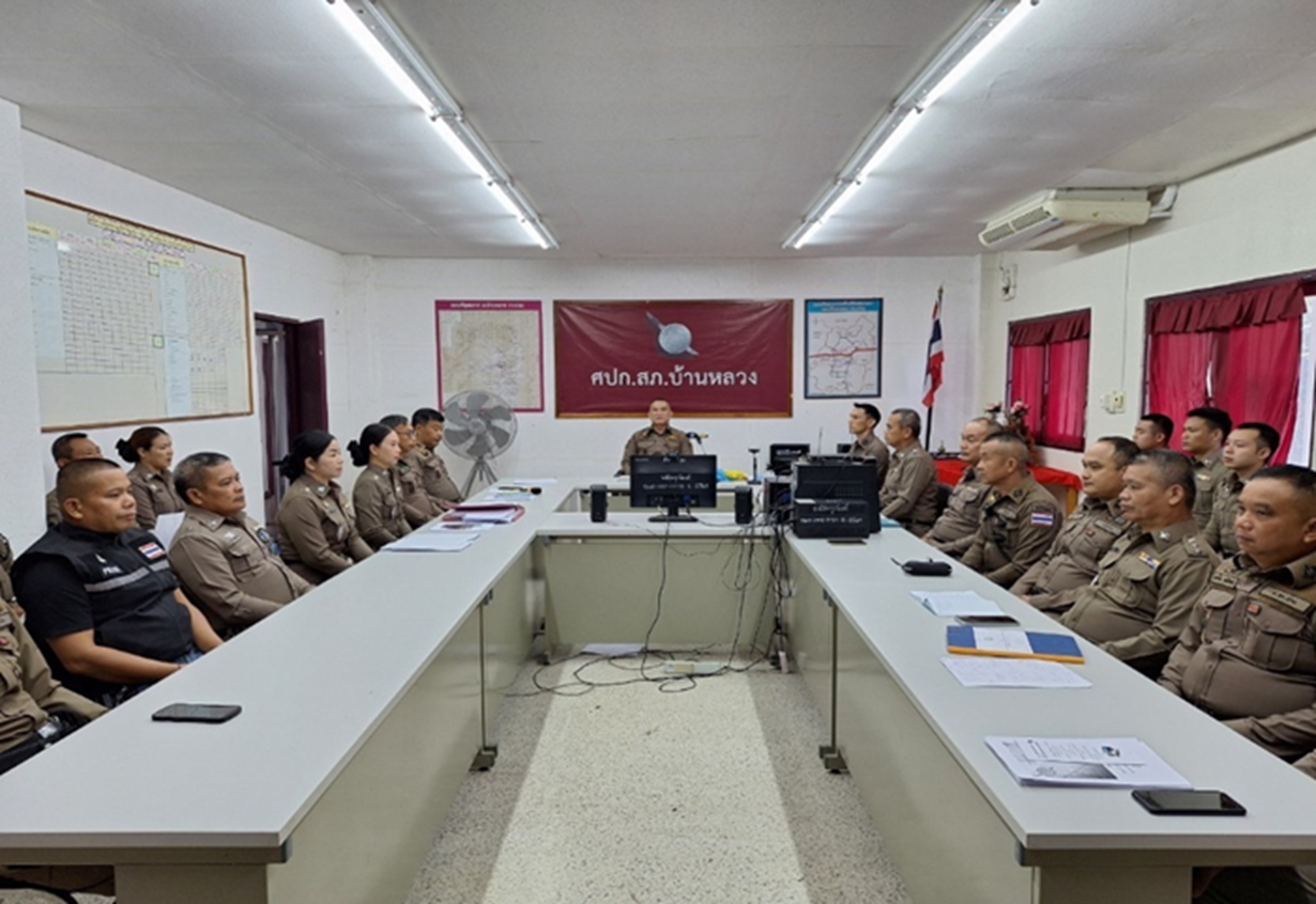พันตำรวจเอก ธานินทร์ แสวงไวศยสุข ผู้กำกับการสถานีตำรวจภูธรบ้านหลวง พร้อมด้วยข้าราชการตำรวจในสังกัด เ