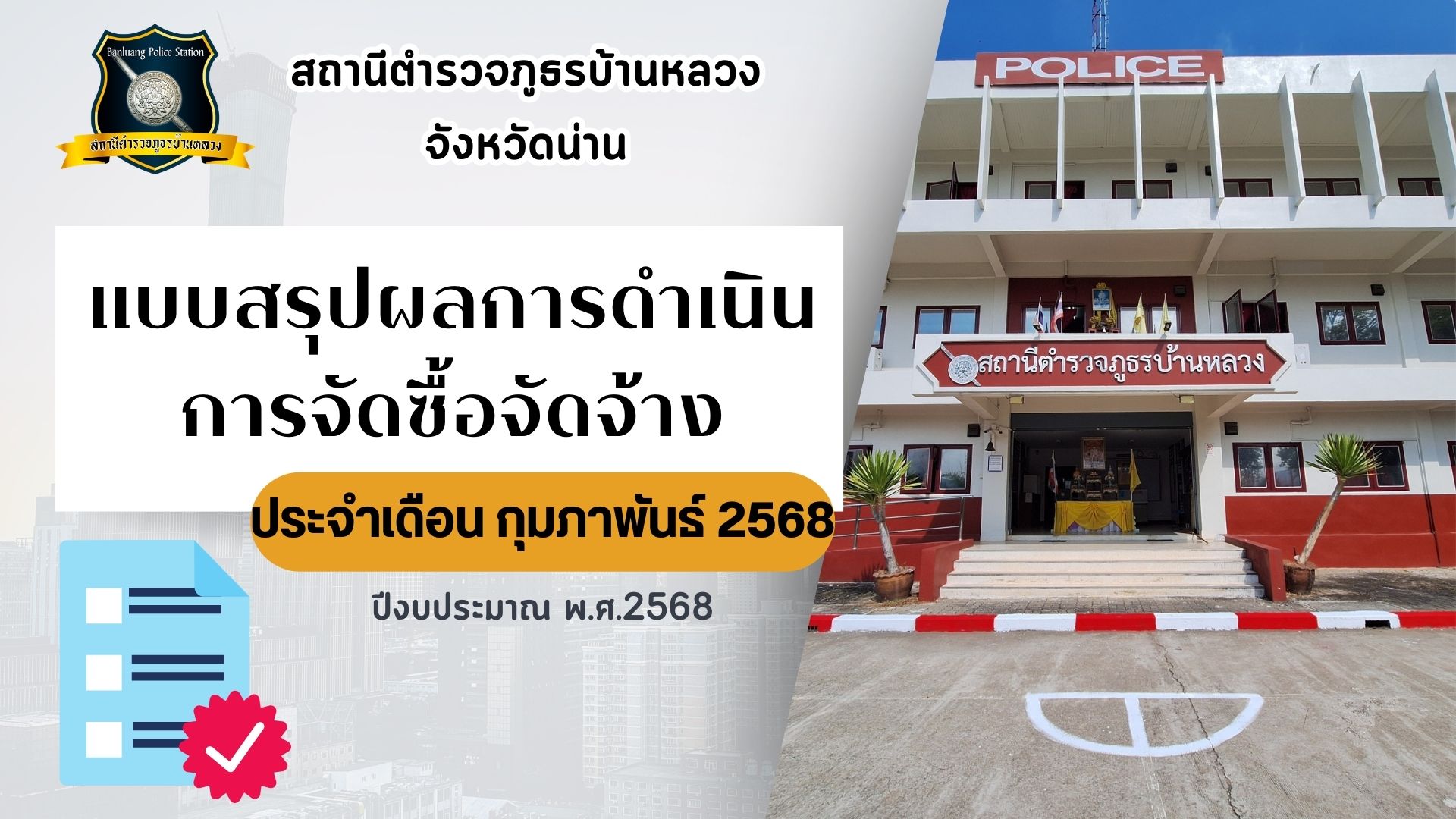 สรุปผลการดำเนินการจัดซื้อจัดจ้างในรอบเดือน ก.พ.68 ปีงบประมาณ พ.ศ. 2568
