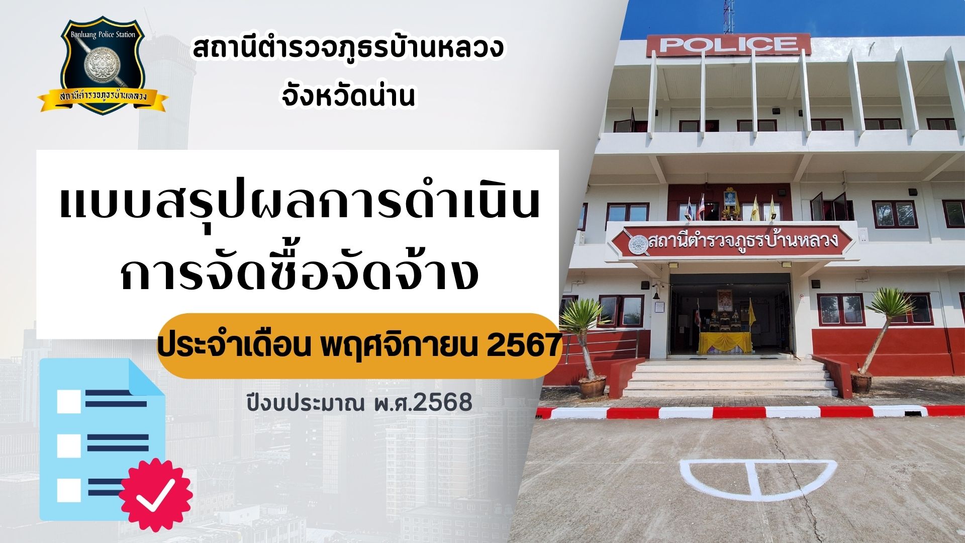 สรุปผลการดำเนินการจัดซื้อจัดจ้างในรอบเดือน พ.ย.67 ปีงบประมาณ พ.ศ. 2568