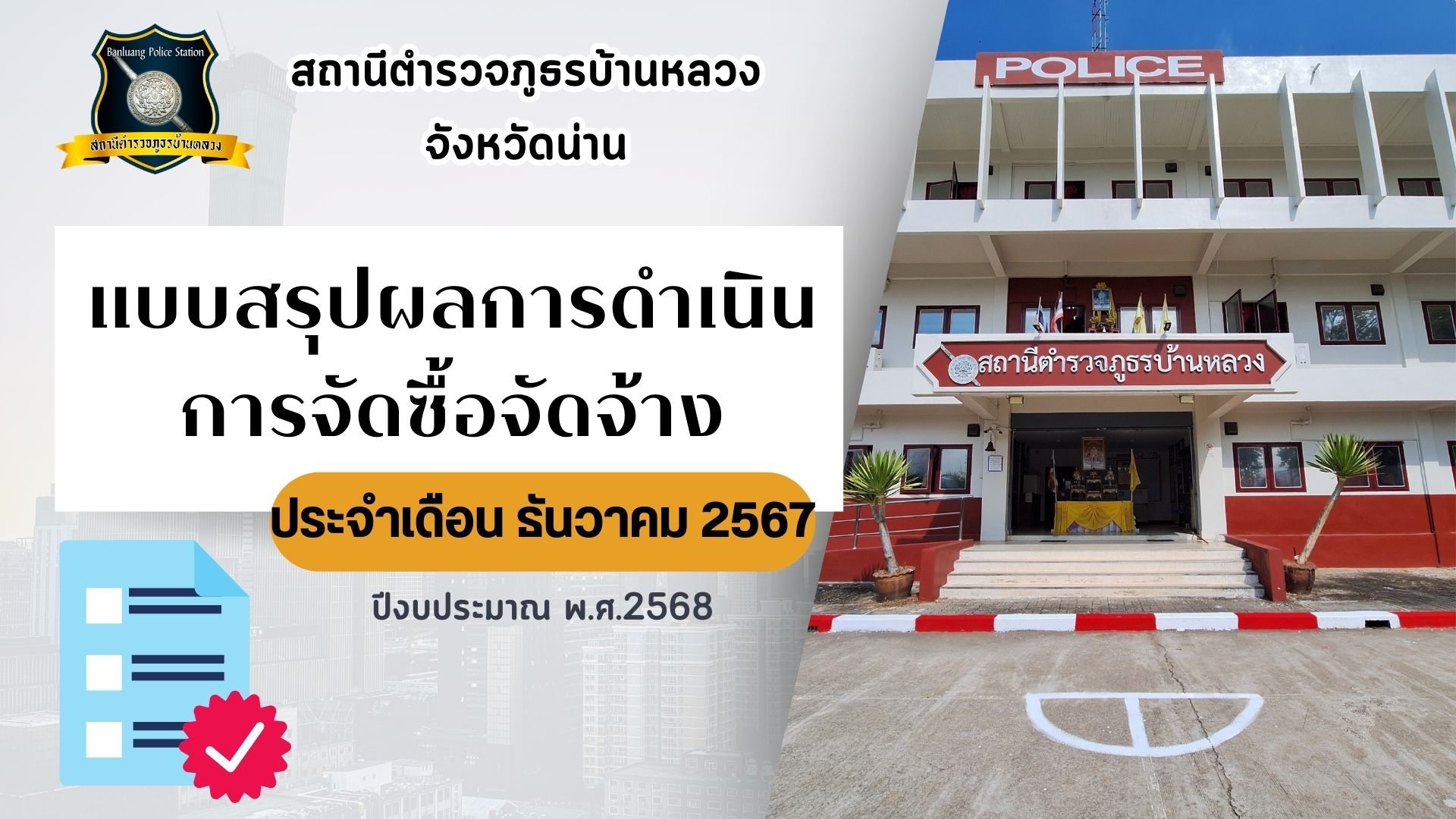 สรุปผลการดำเนินการจัดซื้อจัดจ้างในรอบเดือน ธ.ค.67 ปีงบประมาณ พ.ศ. 2568