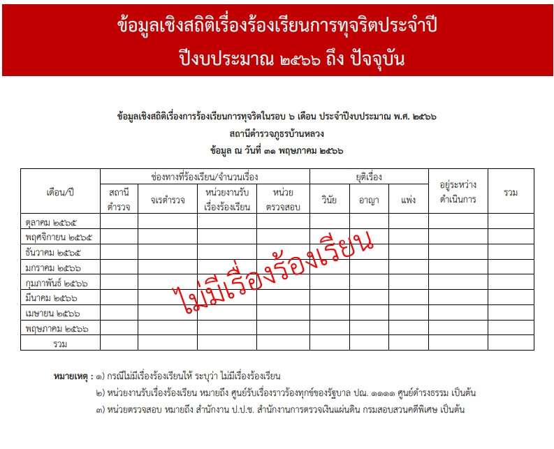 O22 ช่องทางการแจ้งเรื่องร้องเรียนการทุจริตและข้อมูลเชิงสถิติเรื่องร้องเรียนการทุจริตประจำปี