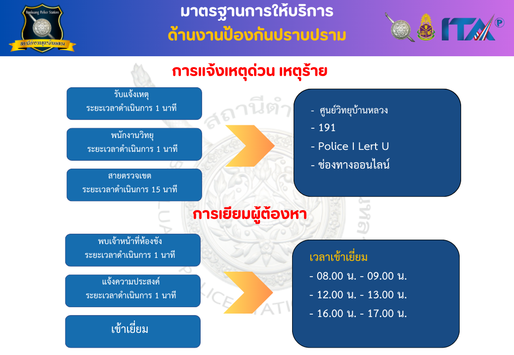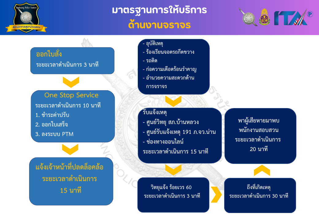 Infographic มาตรฐานการปฏิบัติงาน (SOP) ของ สถานีตำรวจภูธรบ้านหลวง จังหวัดน่าน