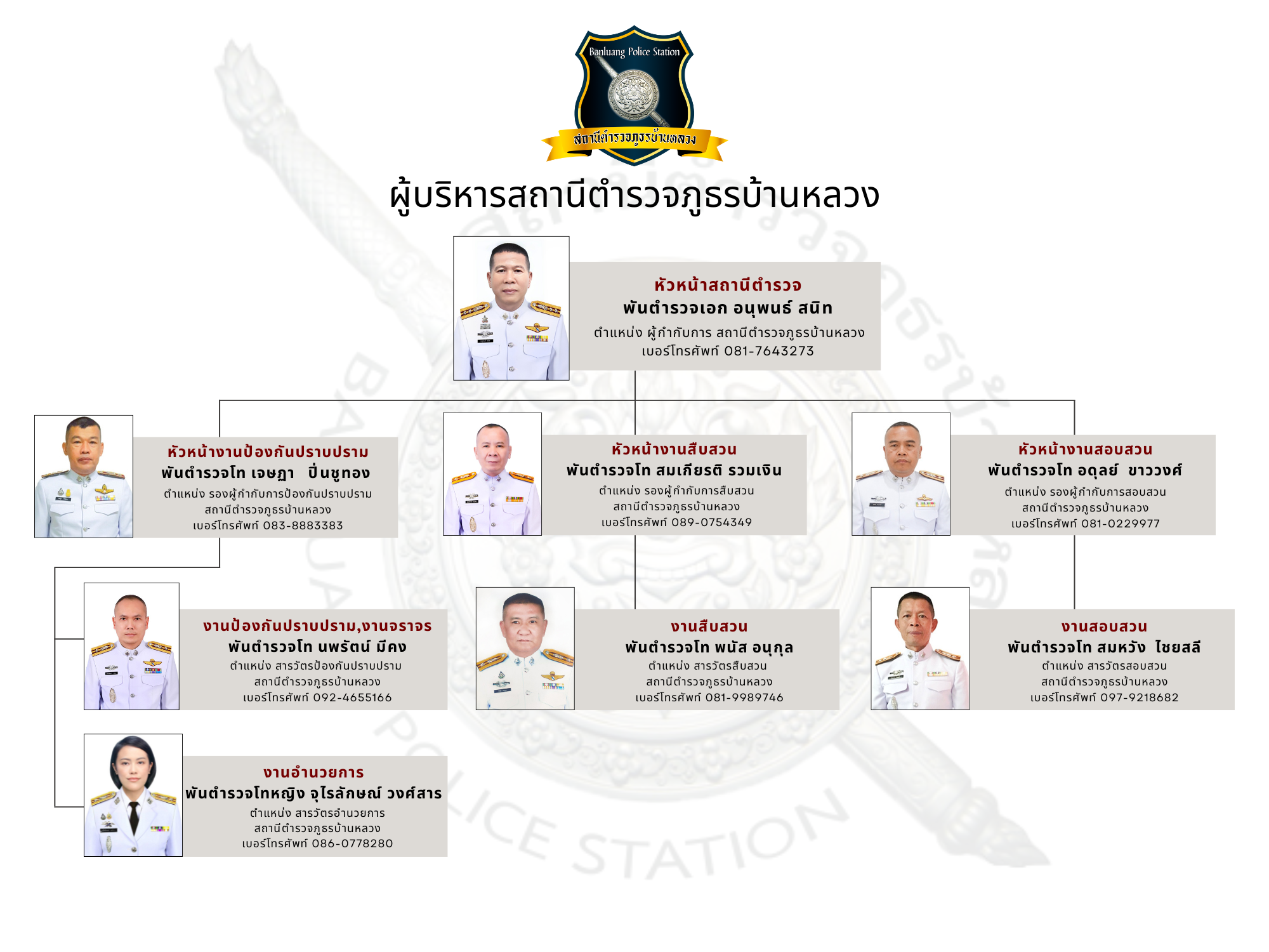 ข้อมูล ผู้บริหารสถานีตำรวจภูธรบ้านหลวง ณ วันที่ 3 มีนาคม 2568